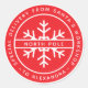 In der Mitte befindet sich eine weiße Schneeflocke mit den Worten "Nordpol" in einem Streifen darüber. Darum herum befindet sich roter gebogener Text zwischen zwei roten Kreisen. Darüber steht "Speziallieferung aus Santas Werkstatt" und darunter "an [Name]". Der Hintergrund ist rot, der Text und die Schneeflocke sind weiß.