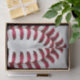 Auf einem weißen Baseball das Foto der roten Spitzen nah. Ideal für Jungen Geburtstag oder Entcoupage für Schlafzimmer Dekoration.