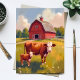 Rote Stallfarm Tiere Kuh Malerei Postkarte