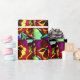 mit originellen Kunstwerken aus Aquarellmalerei von Sacha Grossel aus lila, indigofarbenen, krummroten und gelben Blume gegen grünes Blattwerk. Dieses nahe, farbenfrohe und leuchtend blumengeschmückte botanische Design mit verschiedenen Farbtönen verleiht diesem coolen Wetter, der häufig gefundenen Blume, ein lebendiges Gefühl.