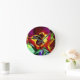 Rote Stiefmütterchen Aquarell Blume Originale Kuns Runde Wanduhr