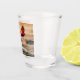 Rote Strand-Stühle auf dem Sand Schnapsglas