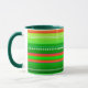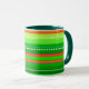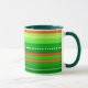 Grün-rote Weihnachtsweihnacht gestreift Tasse. Grün rote Weihnachtsfeiertage Wohngestaltung Streifen Tasse. Grün rote Winterferien Tasse moderne künstlerische Gestaltung. Zeitgenössische Farbgestaltung Streifen Küche Weihnachtsdekoration Zuhause.