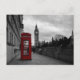 Postcard eines farbigen Fotos einer roten Telefonbox im Londoner Stadtzentrum, mit dem Big Ben im Hintergrund am Gedenktag.