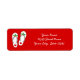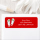 Rote tropische Weihnachtsliegestühle flippen Rücksendeadressen-Aufkleber. Funny Beach Sandals Design für Winter Urlaub Saison in warmer Lage. Niedliche Hausschuhe mit Herzen. Anpassbare Hintergrundfarbe und Textvorlage. Stilvolle Schrift-Typografie-Vorlage. Individuelles Design für neue Zuhause, Adressenwechsel oder Bürowechsel. Ideal für Weihnachten im Juli, Hawaii, Kalifornien, Florida und andere sonnige Orte.