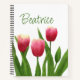 Ein Set roter Tulpen Blume blühen auf einem weißen Hintergrund mit Ihrem eigenen Namen in einem grünen Schriftart mit Skripten.