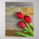 Rote Tulpen aus rustikalem Holz Poster