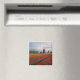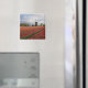 Souvenir Foto Magnet einer Frühlingslandschaft mit einem Feld mit roten Tulpen und anderen Blume und einer Windmühle während des Sonnenaufgangs im Keukenhof Gärten, Bulb Region, Niederlande.