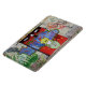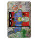 Grün-Gelb-Geist, der eine rote Tür am Donaukanal schützt