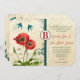 Rote und Aquamarine Blaue Liebesvögel Damask Mohne Einladung