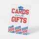 Red & Blue Cards & Gifts Abschluss Tischschild - Halbmehrmaliges Wiederholen auf der White Repeating Background Collection Weitere Party Beschilderung im Zazzle Shop erhältlich!