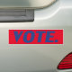 Wählen Sie den modernen Typografie-Autoaufkleber rot und blau. Blauer Text auf rotem Hintergrund.