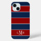 Rote und blaue Rugby Streifen 3 Buchstaben Monogra Case-Mate iPhone Hülle
