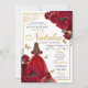 Rote und goldene Flora Quinceanera Einladung zum Geburtstag