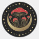 Rote und goldene Mushrooms Halbmond auf schwarz Runder Aufkleber