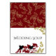 Goldene Blätter und dunkelrote Waldvögel gestalten DIY-Büffetkarten, die in zwei Hälften geklappt werden, um eine Zeltkarte zu erstellen.