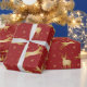 Rote und goldene Weihnachtsrinder Geschenkpapier