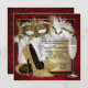 Die elegante Party Einladung Rot und Gold der Frau mit wunderschönen goldenen Glitzer-High-Heel-Schuhen und extravaganter, verzierter Goldmaskerade und Champagnerglas auf hübschem Rot-, Schwarz- und Goldboden. Diese Party Einladung mit Rot-, Schwarz- und Goldmaskerade lässt sich einfach für Ihr Party oder Ihre Veranstaltung anpassen, indem Sie einfach Ihre Veranstaltungsdetails, den Schriftart-Stil, die Größe und Farbe des Schriftartes und den Wortlaut hinzufügen. Bitte beachten Sie - alle Einladungsdesigns, die Sie auf Zazzle finden, sind gedruckte Grafiken ohne Juwelen, Bögen, Glitzer, etc.