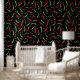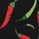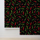 Tapete mit roten und grünen Cayenne Chili Paprikaschoten auf schwarzen Tapeten mit gemusterten Pfeffermustern