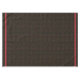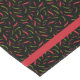 Die schwarze Tischdecke ist mit handgezogenen, roten und grünen Schüttelfrost bedruckt und an beiden Enden des Stoffes ist ein dezenter roter Streifen