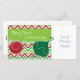 Schablonenentwurf, wo Sie den Gruß, den Closing und den Familiennamen auf dieser roten und grünen Zickzackartkarte (eine neue Drehbeschleunigung auf Zickzack Art-Streifen) besonders anfertigen können. Verzierungen und Pfefferminzen fügen der Festlichkeit hinzu!