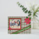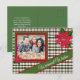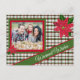 Freuen Sie sich auf die individuell gestaltbare Red and Green Kariert Poinsettia Holiday Postcard mit kariertem Hintergrund in Rot und Grün, festlichen Poinsettias und einem Foto. Der Gruß "Warme Wünsche" bietet die perfekte Touch für Familien und Freunde.