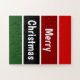 Ein rotes und grünes, horizontal gestreiftes Muster und der Text: Frohe Weihnachten. Sie können auf Personalisieren klicken und den Text bearbeiten. Schreiben Sie 2 Wörter in einer Zeile und sie werden auf zwei Zeilen angezeigt.