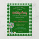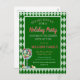 Diese rote und grüne Weihnachtsfeier-Postkarte oder Weihnachtsfeier-Einladung zeigt ein festliches Design mit eleganter goldener Schrift auf schwarzem Hintergrund, umgeben von einem roten und grünen Tartan- oder Karomuster.