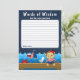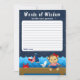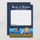 Diese niedliche und lustige Weisheitskarte zeigt einen Seemann-Affen auf einem Holzdeck mit Seemöwe und Krabbe. Im Hintergrund ist ein niedlicher roter Vogel auf einem Segelboot, Meereswellen und ein marineblauer Sternenhimmel. Der Text verbindet fett- und serifenlose Schriftart für ein stilvolles und modernes Aussehen. Das ist ideal für eine Babydusche zum Thema Wassersport.