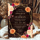 Elegante Boho Wasserfarbe Rot und Orange Herbst Blume und Foliage Design mit goldgeometrischen Rahmen, vergoldeten Glitzer Konfetti und rustikalen Hintergrund Holz