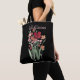 "Farbige rote und rosa Wildblumen und grüne Stiele Wasserfarbe auf schwarzer Tasche.