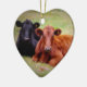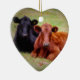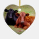 Ein schöner Moment zwischen einem Paar Vieh, zusammen legend auf ein grasartiges Feld. gefangen genommen in einer erwichenen Farbphotographie. Die perfekte Weihnachtsbaumverzierung für das Vieh Viehzüchter oder Rindfleischliebhaber, die als Rucksackumbau auch verwendet werden, oder vom Rückspiegel gehangen werden konnten.