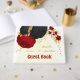 Romantische dunkelrote und schwarze Blume mit goldenen Blätter botanisches Hochzeitsgast-Buch Die Glitzer Details werden simuliert.