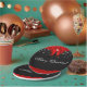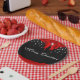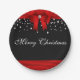Rote und schwarze Weihnachtsplatte. Roter Bogen und schwarze Entwurfs-Weihnachtsfeiertags-Platte.
