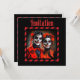 Rote und schwarze Karikatur Dia de los Muertos Couple in roter Kleidung. Fügen Sie Ihrem nächsten Event eine Touch des Makabre hinzu, mit dieser wunderschönen Einladung. Mit einem Ehepaar in traditioneller Día de los Muertos-Manufaktur, ist diese Einladung ideal für Halloween-Partys, gotische Ansammlungen, oder jeden Anlass, wo Sie gewollt, um eine Touch der spooky.