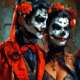 Rote und schwarze Karikatur Dia de los Muertos Couple in roter Kleidung. Fügen Sie Ihrem nächsten Event eine Touch des Makabre hinzu, mit dieser wunderschönen Einladung. Mit einem Ehepaar in traditioneller Día de los Muertos-Manufaktur, ist diese Einladung ideal für Halloween-Partys, gotische Ansammlungen, oder jeden Anlass, wo Sie gewollt, um eine Touch der spooky.