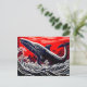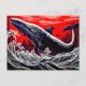 Rote und schwarze Linocut Sperm Whale Breach Postkarte