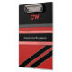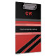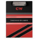 Dies ist eine personalisierte Zwischenablage mit einem roten und schwarzen Farbschema. Sie können Ihre Initialen und Ihren Namen hinzufügen, um es für Sie einzigartig zu machen.