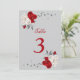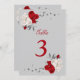 Rote und weiße Blume mit Tischnummer-Karte für graue Blätter