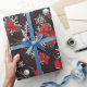 Rote und weiße Bogen Ornamente Schneeflocken auf S Geschenkpapier