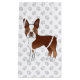 Desteis originelle Cartoon-Illustration einer niedlichen Rot-Weiß-Farbe Boston Terrier Rasse Hund. Der Hintergrund weist ein Muster grauer Hundepfoten auf.