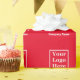 Es ist einfach, Markenverpackungspapier für Firmengeschenke zu erstellen. Ersetzen Sie das Display-Image einfach durch das Logo Ihres Unternehmens. Unter dem Bild befindet sich eine weiße Textzeile für den Firmennamen oder eine benutzerdefinierte Nachricht. Das Packpapier ist hell rot und weiß.