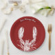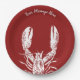 Fügen Sie Ihre eigene Nachricht hinzu, um benutzerdefinierte Party-Vorräte für Ihr spezielles Ereignis zu erstellen. Diese Teller sind in einem dunkelroten Hintergrund mit einem Hummer in Weiß dargestellt. Sie sind bereit, mit Ihrem eigenen Text personalisiert zu sein, in weißer Schrift oder in kursiver Schrift.