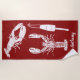 Dieses Strandtuch ist mit einer nautischen Collage mit Illustrationen von Hummern und einer Vintagen Holzfischerei in Weiß vor einem dunkelroten Hintergrund ausgestattet. Es ist bereit, mit einem Namen in weißem Schrift oder kursiven Schriften personalisiert zu sein. Wenn Sie eine andere Hintergrundfarbe bevorzugen, wählen Sie die Option, um weiter anzupassen.
