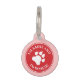 Dieses Begleiter-Tag ist eine Möglichkeit, den Gesundheitszustand Ihres Haustieres zu verbreiten. Leicht anpassbare Textbereiche mit dem Namen Ihres Hundes und der Notrufnummer. Der Anhänger ist rot mit einer Silhouette aus weißem Hund in der Mitte.