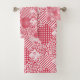 Rote und weiße Patchwork rustikal Badhandtuch Set