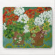 Rote und weiße Pelargonien in Töpfen 2013 Mousepad