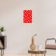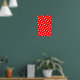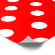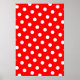Weiße Punkte auf einem hellroten Hintergrund. Das weiße Polka Punktmuster wird an einem diagonalen Schrägstrich geneigt.