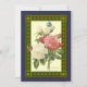 Botanische Kunst, die in den 1800er Jahren von dem berühmten französischen Künstler Pierre Redoute gemalt wurde Diese einzigartige Version kombiniert zwei Illustrationen: Tee-Rose und Rosa Rose von Orleans. Zwei bunte Schmetterlinge leuchten auf den Blume. Das Bouquet ist mit antiken Handschriften gerahmt. Die Namen der Rose sowie der Künstler werden am Ende des Kunstwerks in Skripten geschrieben. Von den GardenPages