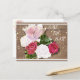 Planst du eine Hochzeit? Möchten Sie eine Einladung mit einem schicken Design? Das ist die Einladung für dich. Diese Postkarteneinladung enthält ein gedrucktes Bild eines Gemäldes aus rot-weiß Rose mit Parkettboden.